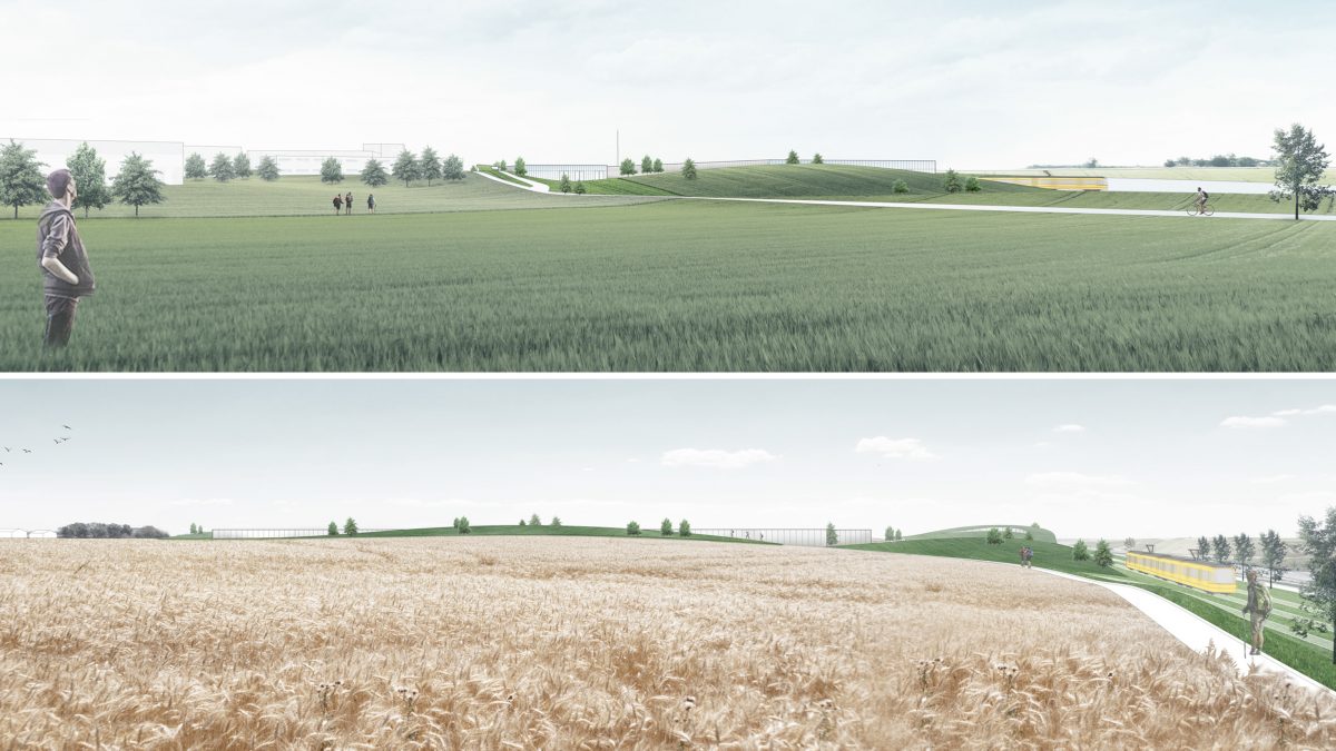 Das Wettbewerbsgebiet befindet sich auf der ländlichen Peripherie um Weilimdorf, vor den Toren der Stadt Ditzingen und grenzt im Süden an den Stadtteil Hausen an. Auf Grund der besonderen Lage als Regionale Zäsur im Landschafts- u. Naturschutzgebiet, sowie auch vor dem Hintergrund der Dimension des Eingriffes vertreten wir die Haltung einer nachhaltigen Lösung, die sich mit der Ästhetik und der Gestaltung von Landschaft, sowie auch mit ökologischen, ökonomischen und sozialen Fragestellungen auseinandersetzt. Wir interpretieren die Entwurfsaufgabe als ein Fortschreiben vom Menschen gebauter Kulturlandschaft und arbeiten mit den vorhandenen Strukturen und Motiven des Ortsbildes (Süddeutsches Berg- u. Hügelland).